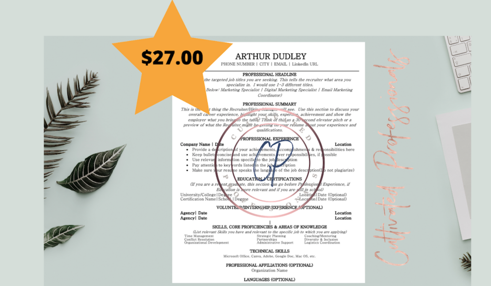 Resume Templates (2), CV Letter (2), Thank You Letter, Job Tracker, Reference Template & 99 Action Verbs + 75 Soft Skills for your Resume.